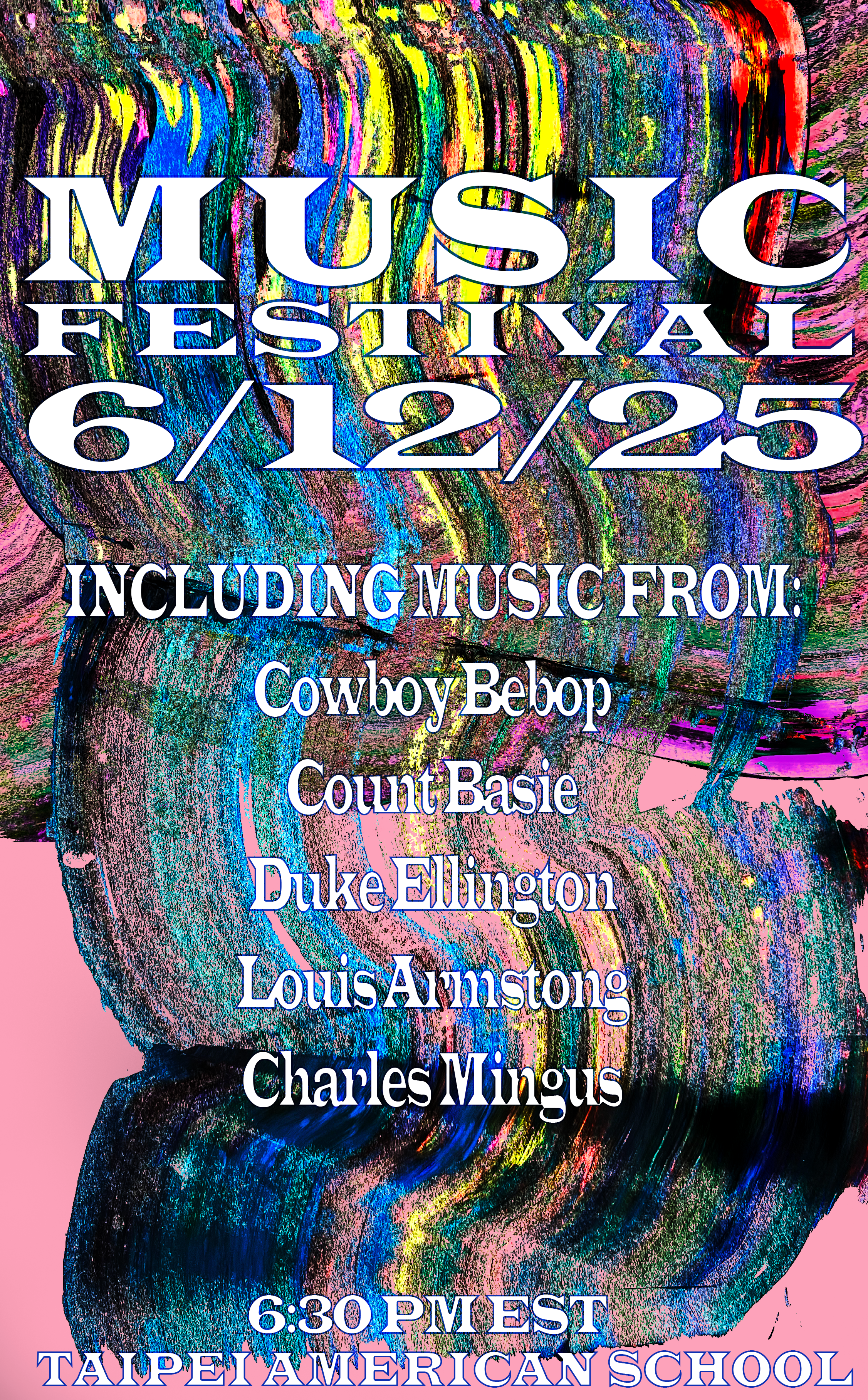 2024|Graphic Design|Squeegeed Paint Poster Title MUSIC FESTIVAL Size A4 Medium Paint and Adobe Photoshop Artist Statement