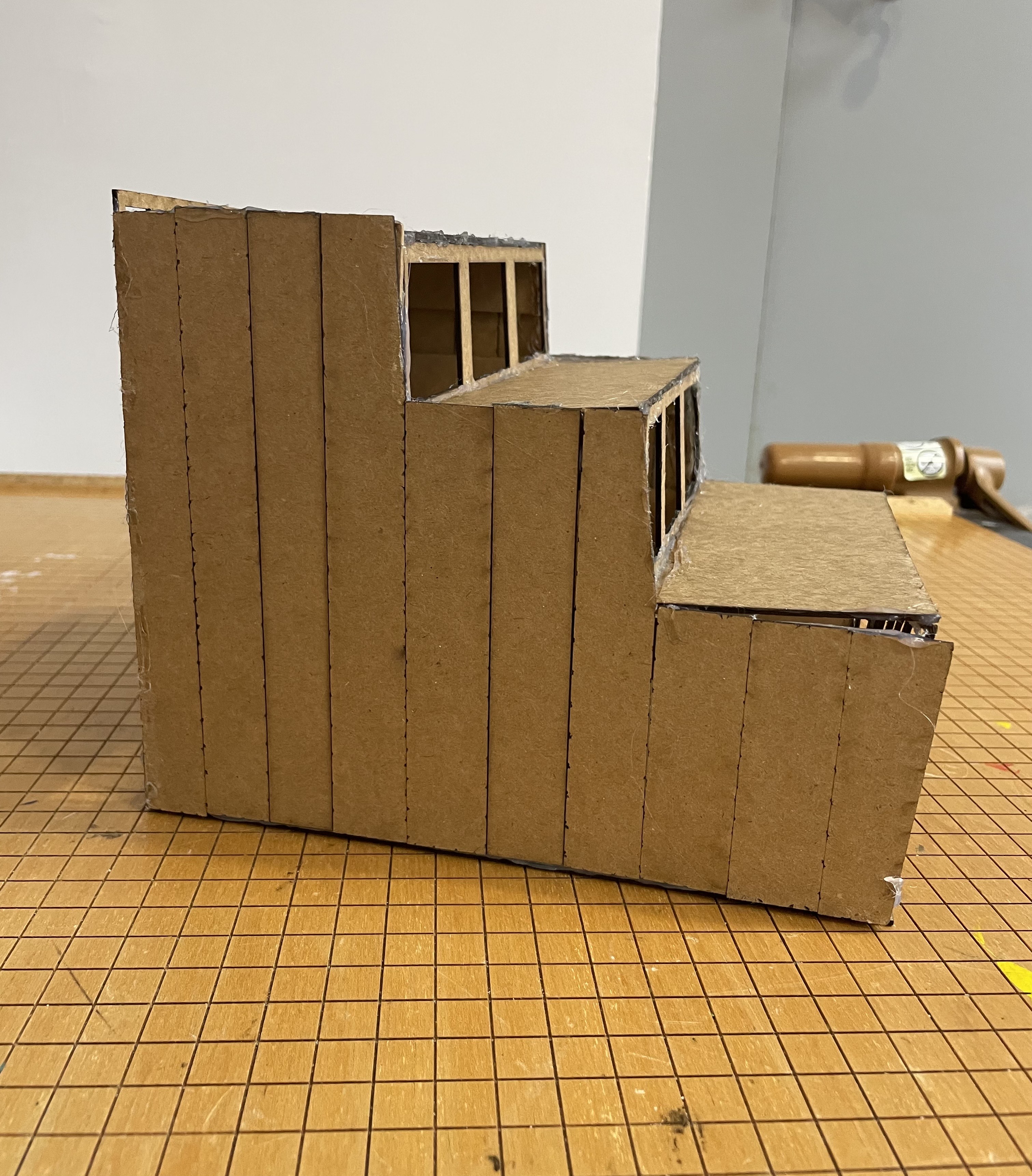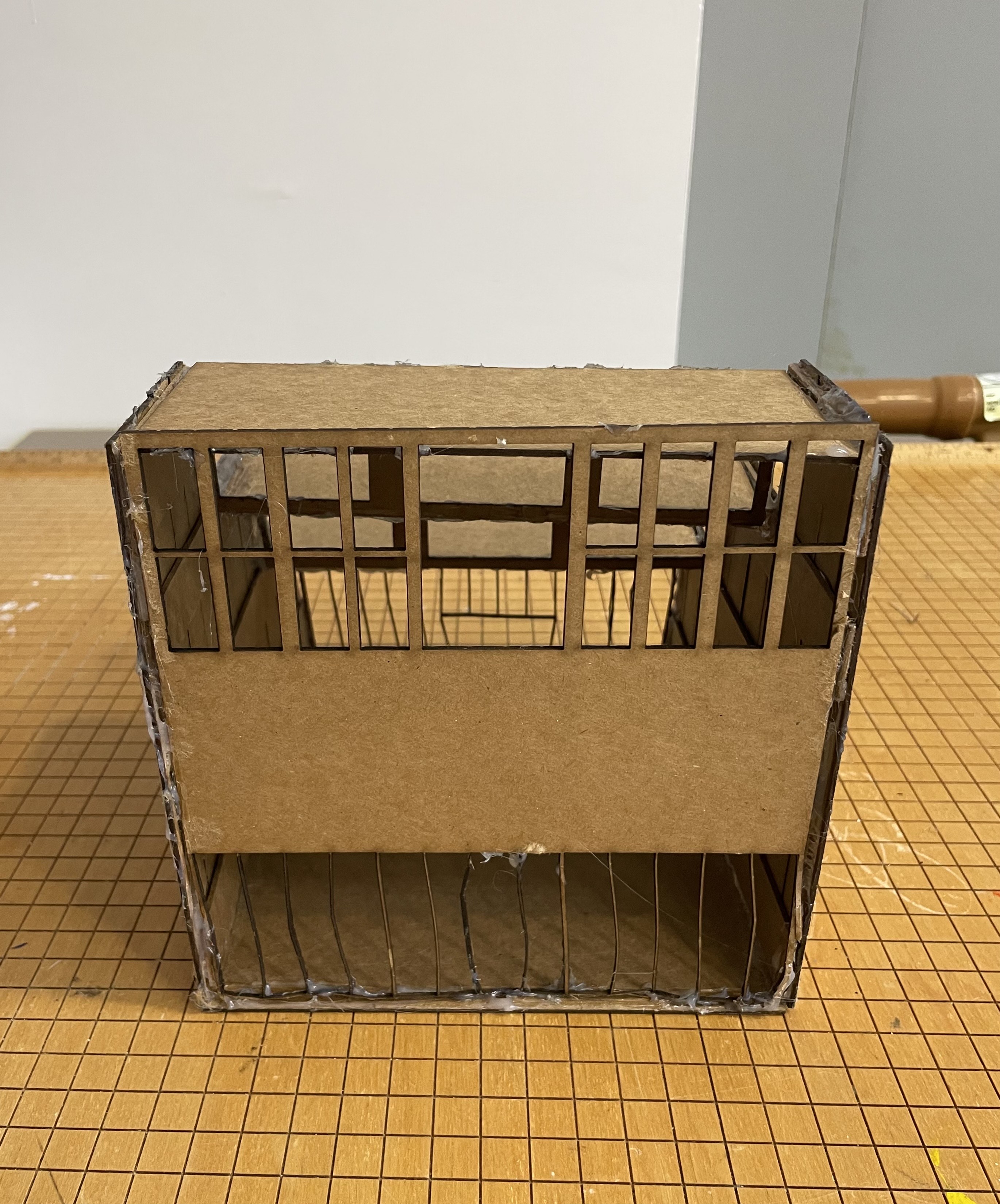 I designed a simpler model of the Whitney Museum in New York, inspired by the architect Renzo Piano. Although all the pieces from laser cutting fit together well, my final structure would have looked much cleaner if I had been more experienced with the hot glue gun. Overall, I have learned a lot from this assignment.
